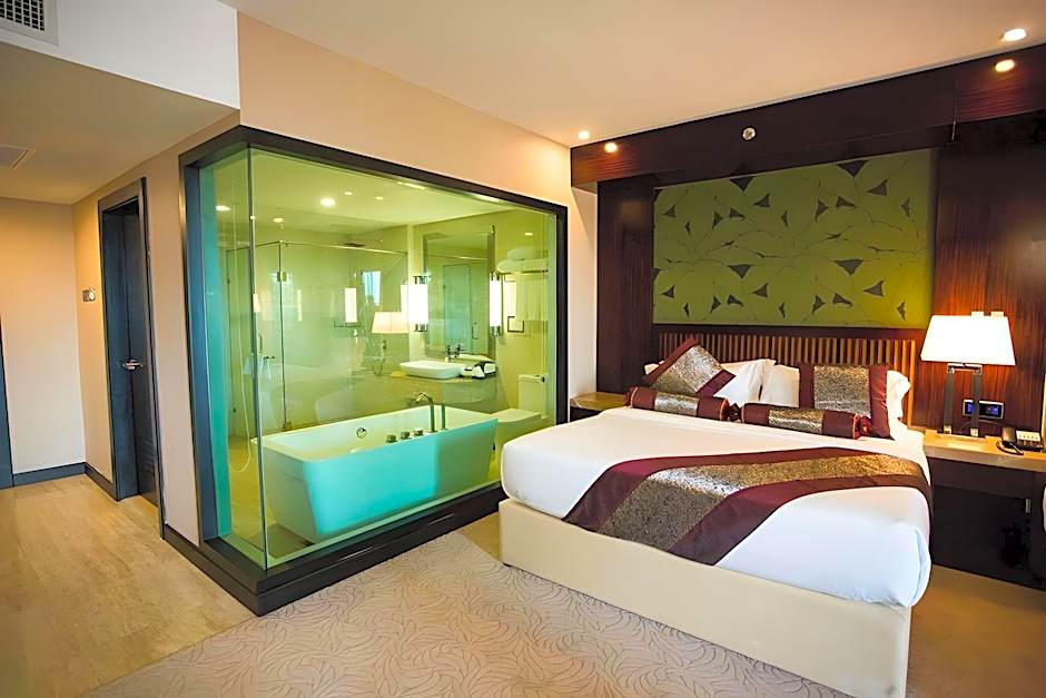 This spacious air-conditioned executive suite opens up to views. It is fitted with a flat-screen satellite TV, mini-bar and a sofa. The private bathroom includes a bathtub, hairdryer and free toiletries. No outside food or drink allowed into property